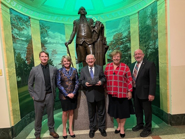 From left to right: AIHP Executive Director Luc Richert, AIHP Director Susan Cantrell, AIHP Past President Bill Zellmer, AIHP President Cynthia Boyle, and AIHP Immediate Past President John Grabenstein at the historic George Washington Masonic National Memorial in Alexandria.