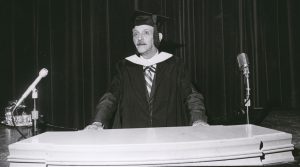 Prof. David Cowen speaks at the 50th anniversary celebration of Rho Chi in 1972 (Courtesy Kremers Reference Files)