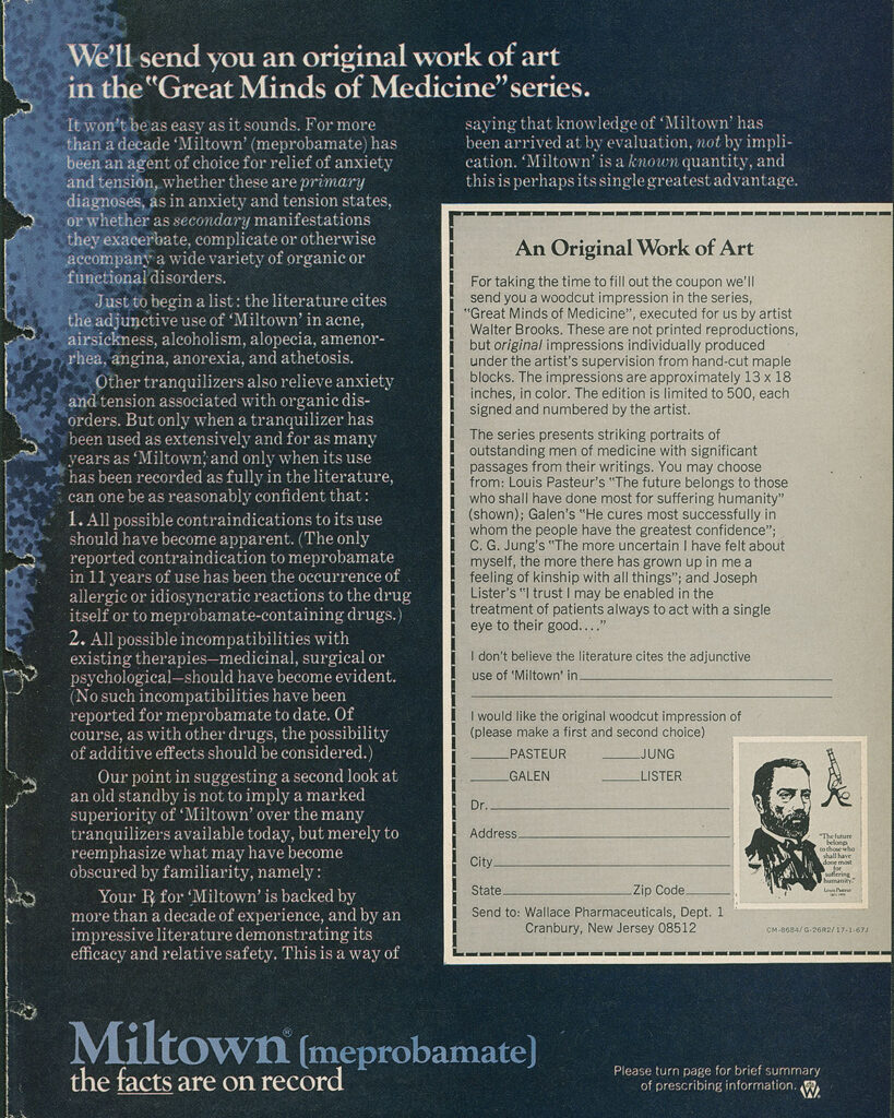 Miltown advertisement from AIHP’s Mickey Smith Drug Advertising Collection