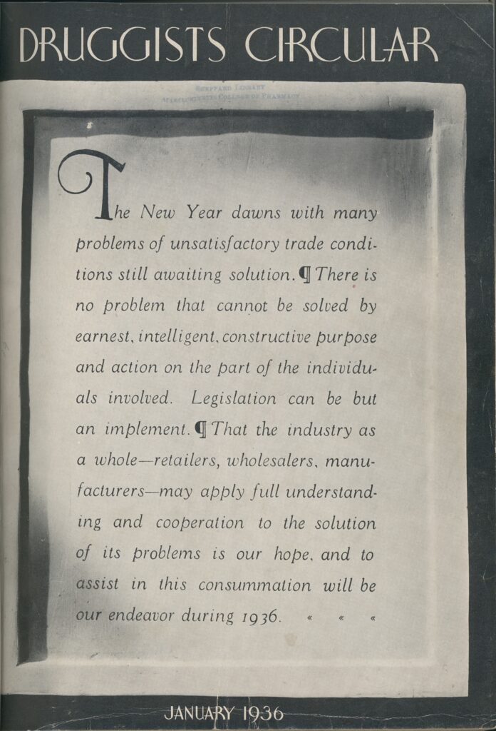 Druggist’s Circular January 1936 Cover from the collection.