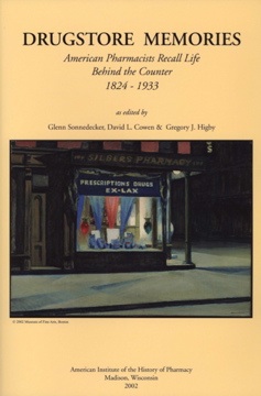 Edited by Dr. Glenn Sonnedecker, Dr. David L. Cowen, and Higby, Drugstore Memories contains two chronological sections: 1824–1860 and 1860–1933. The editors prefaced both sections with pithy and informative summaries of the state and shape of American pharmacy in each era.
